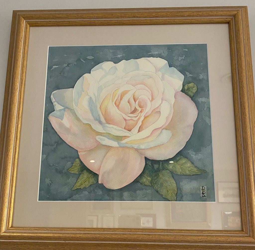 I will start with the first woman, the actual artist of the painting – Dawn. Dawn was a housewife to Eric and had two late primary school children when I first met her in Canberra. She was one of the most gifted and artistic people I have ever met. She made rag clowns that she sold and I was blessed with being given one (I can’t recall who I gave it to!) In addition, she painted flowers in water colour. She was in her late 80’s when I last visited with her and she was in the process of moving into an aged care facility and cleaning out her cupboards. She asked me to choose a painting, and I chose the above.